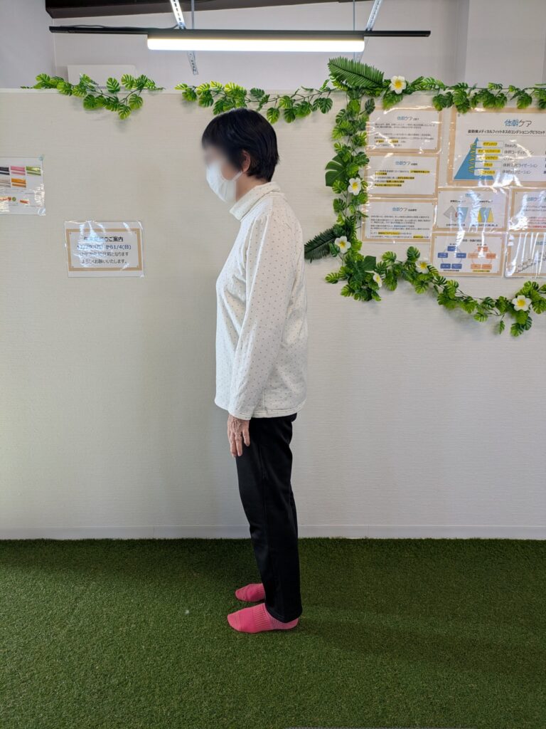 カウンセリングの前後で姿勢を撮影し、比較画像をお見せすると、